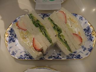 デザートの前にちょこっとサンドイッチなぞお腹に入れとこうと。